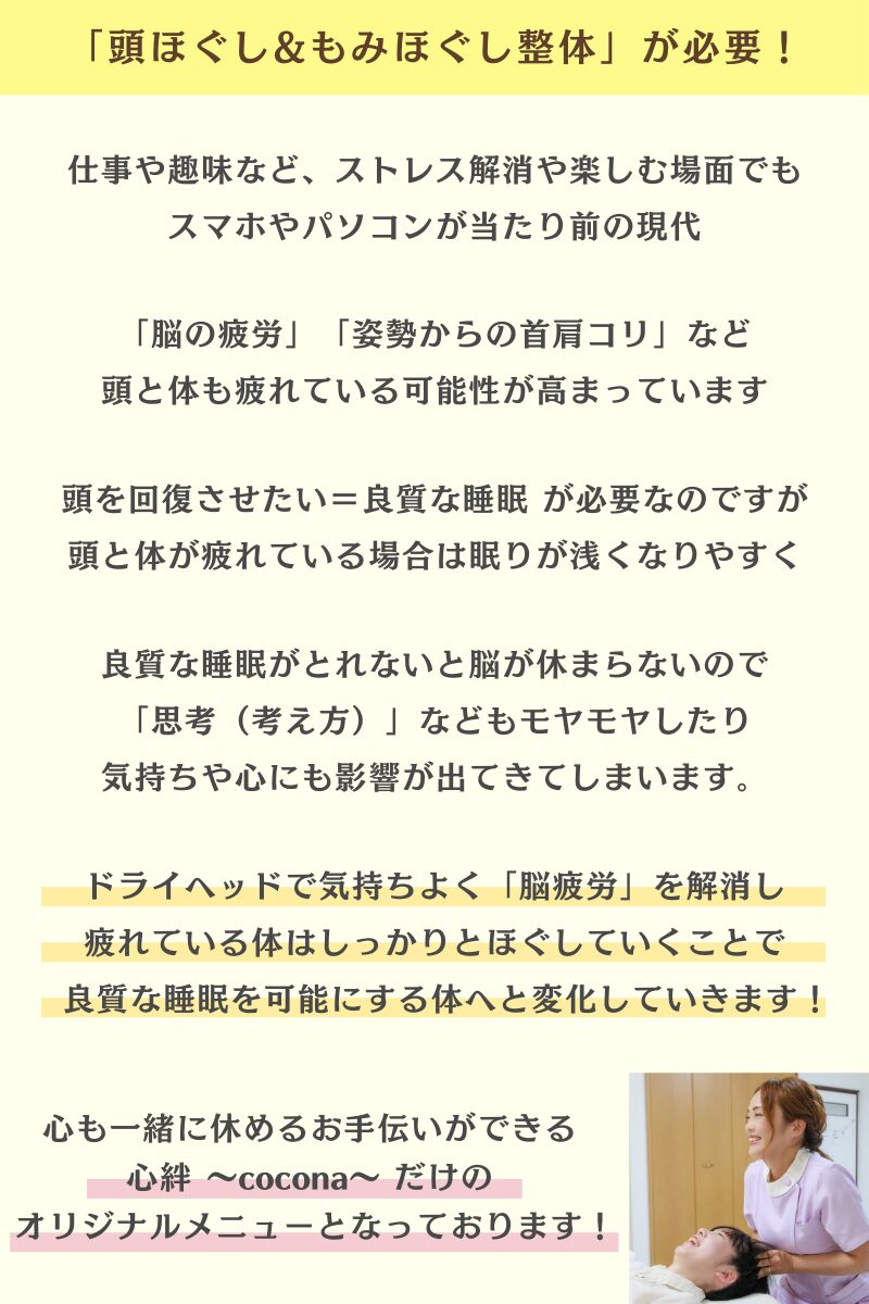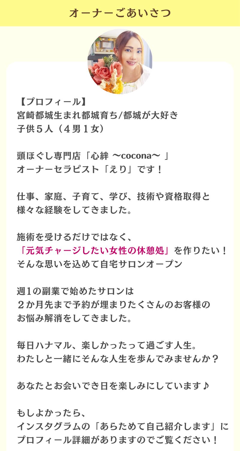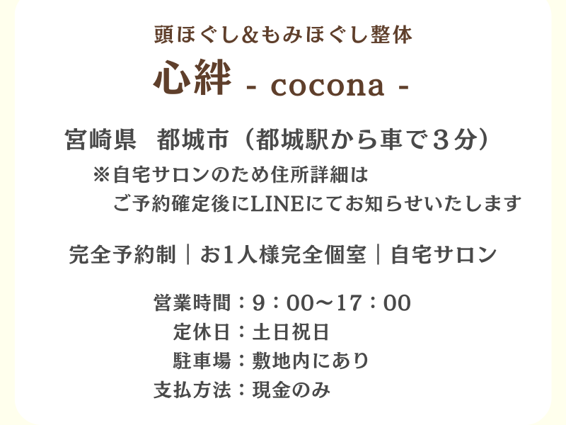 【都城市】頭ほぐし専門店|心絆~cocona~初回メニュー紹介